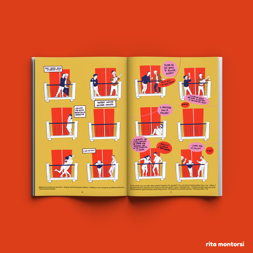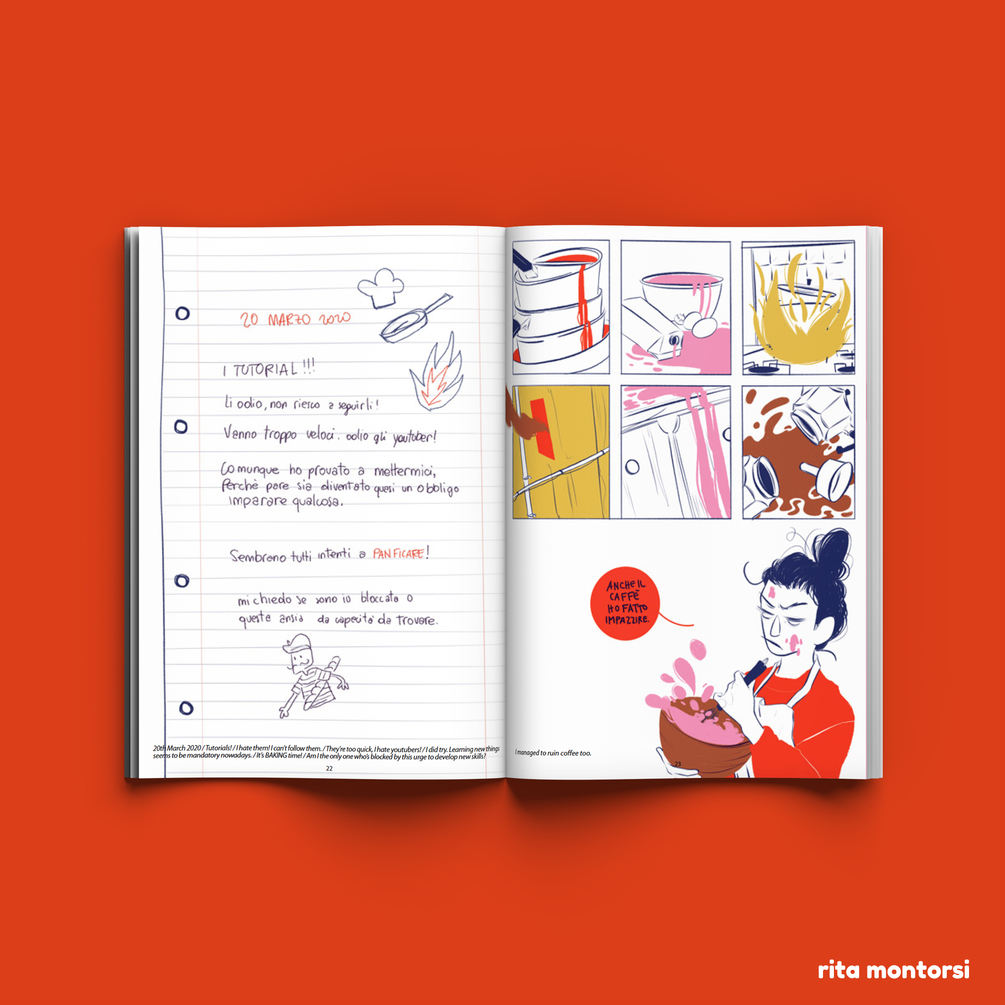 ENG _ "Static Diary" is a comics book story that develops over the months of the first lockdown. The main character starts from a situation of unease and inadequacy (something that young people often live in Italy around the age of 30). In all this the pandemic forces to different rhythms, every interest is distorted and life seems not to proceed, she even starts to talk to plants and appliances. But our protagonist will find in static a way of escape, because we are animals in evolution even when everything stops.